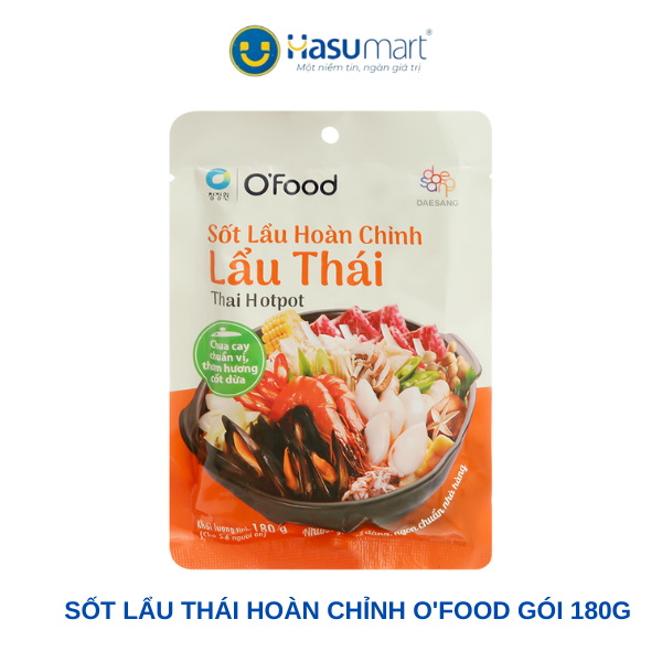 Sốt lẩu Thái O'Food là sự hòa quyện và phối trộn giữa nhiều nguyên liệu và gia vị như nước mắm, đường, cà chua cô đặc, sả, tỏi, lá chanh, hương cốt dừa, dầu ớt,...tổng thể tạo nên nước cốt đậm đà, chua cay cùng vị thơm nức mũi, vừa ngửi thôi cũng đủ làm cho chiếc bụng phải cồn cào.